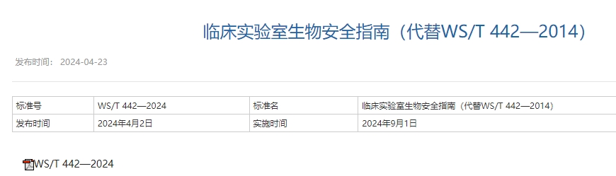 鏈接:臨床實(shí)驗(yàn)室生物安全指南 WS/T 442—2024